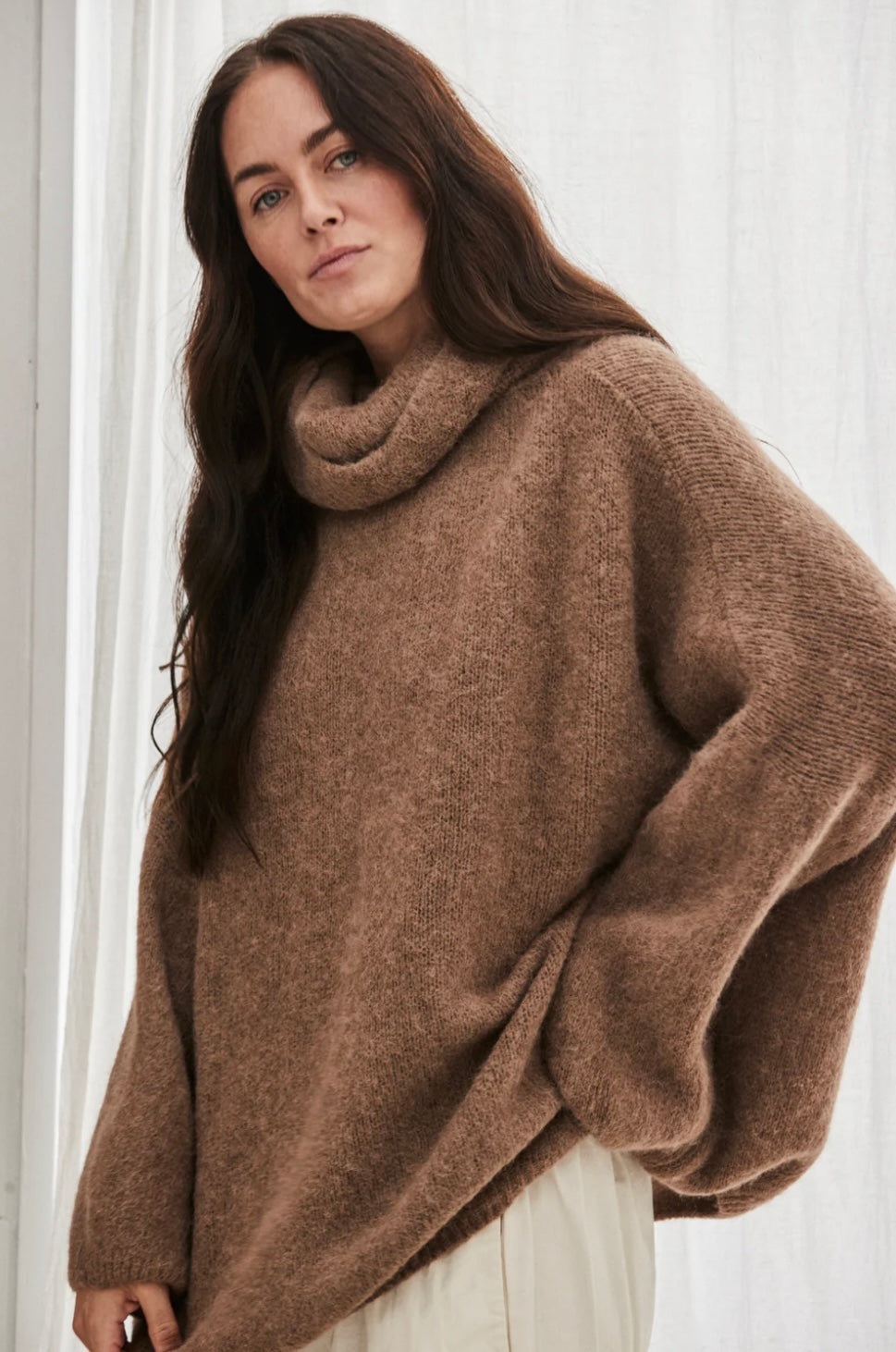 Crafted in Italy, the Vanessa Turtle Neck features a chunky, oversized design made from soft alpaca wool. This luxurious knit offers exceptional comfort and warmth, making it an ideal choice for cooler seasons. Its relaxed fit and premium material combine style with cozy wearability for a refined yet effortless look.