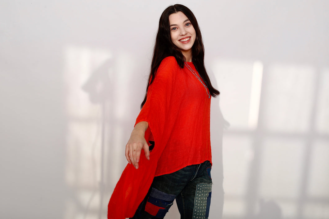 The Luna Oversized Linen Top is crafted from 100% Italian linen, ensuring exceptional breathability and comfort. Its flowy design promotes ease of movement, making it suitable for warm climates. Machine washable for practical care, this top combines elegance with functional wearability.