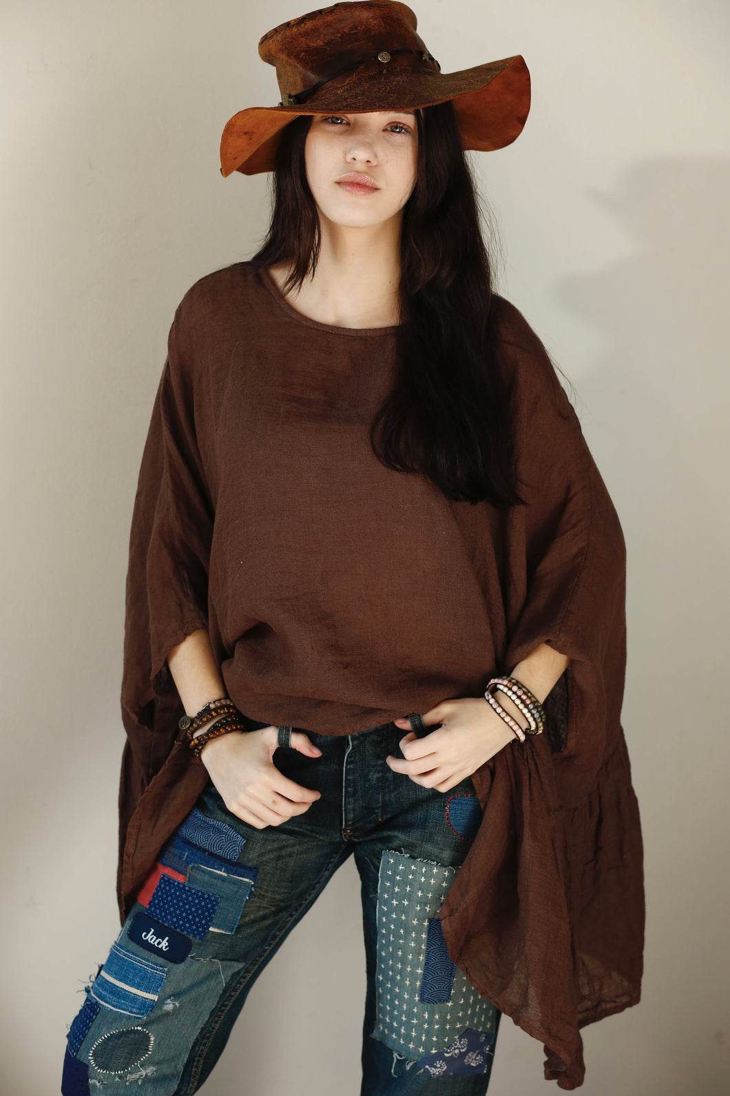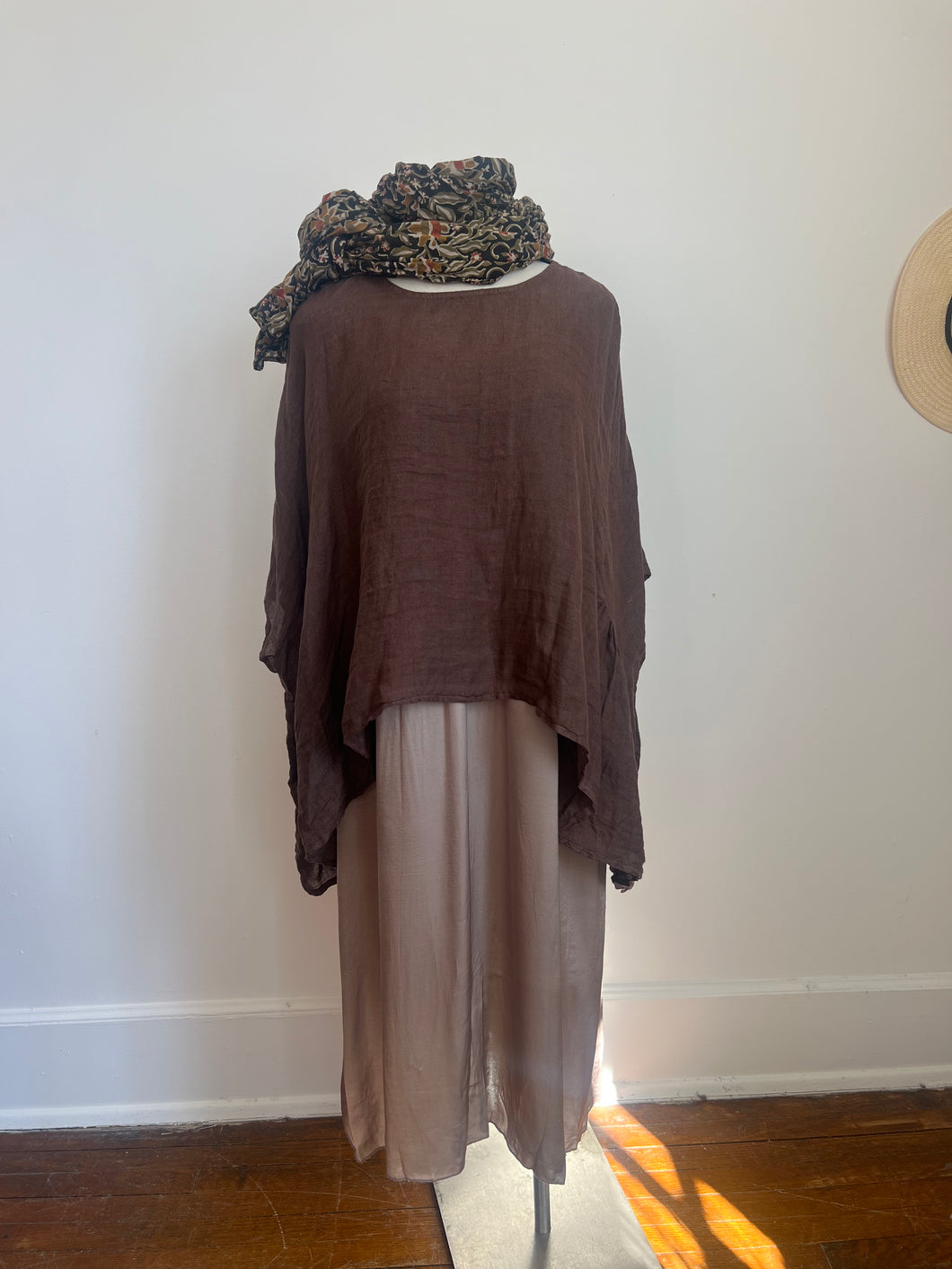 Luna Oversized Linen Top Brown