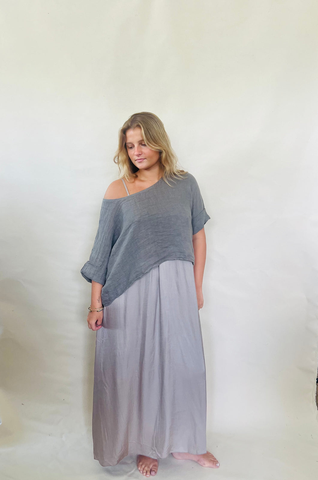This Zoe Linen Top features a delicate, ultra-thin voile fabric ideal for layering over the Gigi silk dress or a simple tank. Its rich, earthy tones add subtle depth to your outfit, while the lightweight material ensures comfort and breathability. Designed by Atelier Marie Mac, this top requires gentle hand washing to maintain its quality and softness. Perfect for creating refined, layered looks with ease.
